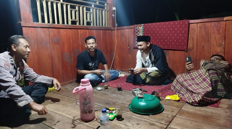 Aipda Isjuwanto dan Aiptu Ucu ke warga Sat kamling sampaikan pesan kamtibmas.